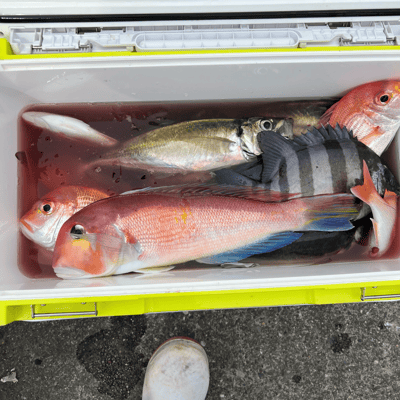 【五目→アマダイリレー便】 · 2024/03/19 【五目→アマダイ・レンコダイリレー便】 最初は45cm前後の特大アジが釣れました🎉食いが浅いのとサイズが大きいせいでバラシが多く数はそれほど上がりませんでした😅他にはイシダイが釣れました。 レンコダイ・アマダイはともに良型が釣れました🤗他にはオニカサゴが釣れました。 tagPlaceholderカテゴリ: 2024年3月